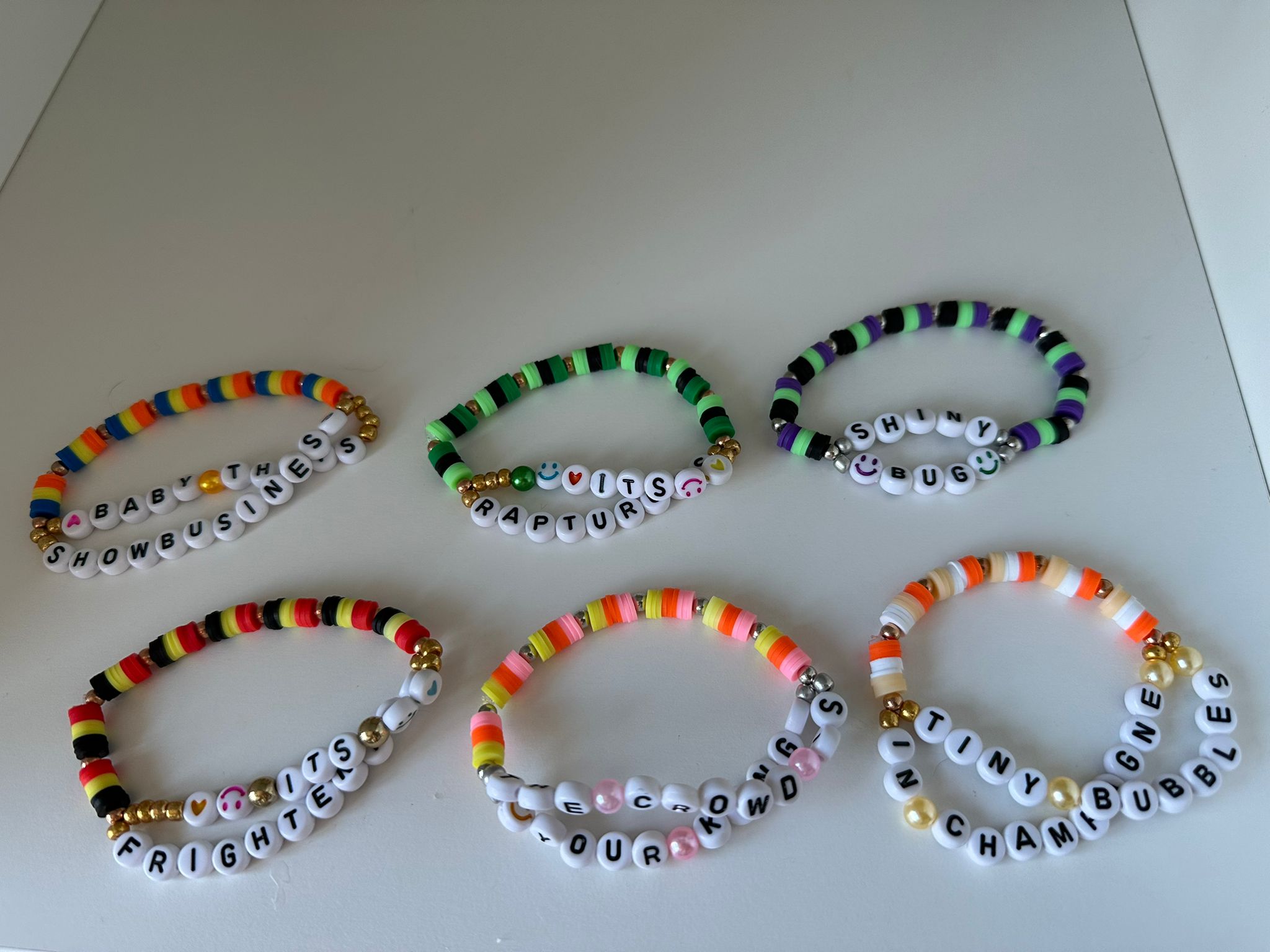 We recommend avoiding stretching our Swiftie bracelets too far when putting them on and taking them off. Instead, try ‘rolling’ them over your hand to prevent the elastic from becoming over-stretched.